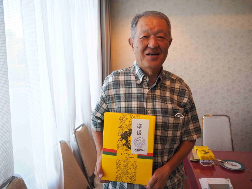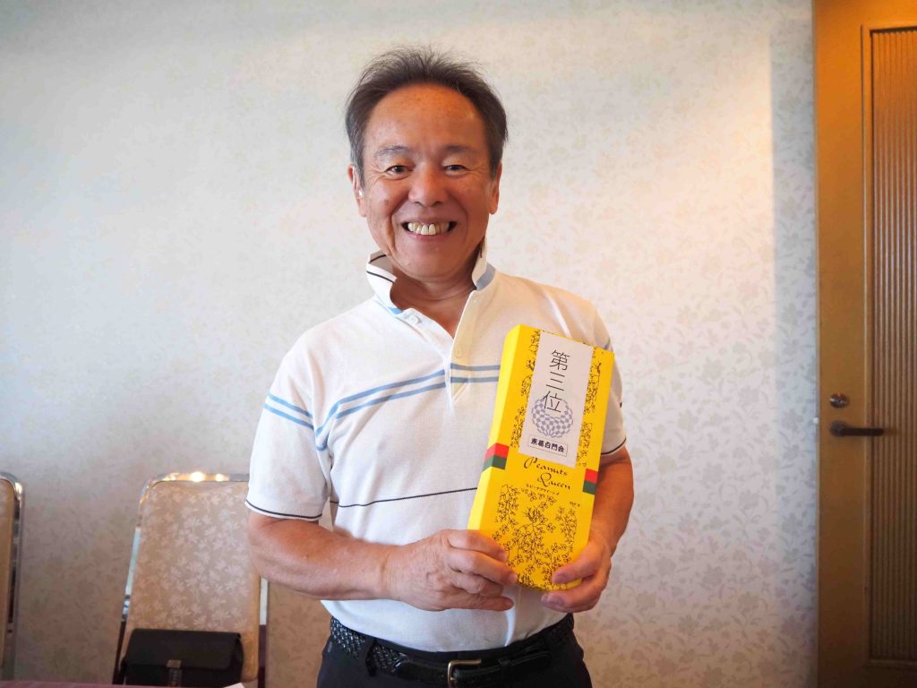 9時06分に1組目がスタートし、15時頃にホールアウト。競技はいつも通りの新ぺリア方式です。16時少し前頃から成績発表と表彰式を行いました。第21回を制したのはネット75.2(グロス98)で上田史郎さんでした。2回連続4回目の優勝です。準優勝は、ネット75.4(グロス97)で山本順一さんでした。第3位はネット75.6(グロス96)の岩間徹夫さんでした。ベスグロは見事94の加藤学さんで、上位5名が94~98に入る接戦でした。なお、小太刀正史さんがゴルフコンペに初参加、ニアピン賞も取り今後の活躍が期待されます。